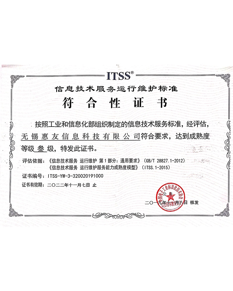 信息技術(shù)服務(wù)運(yùn)行維護(hù)標(biāo)準(zhǔn)符合性證書