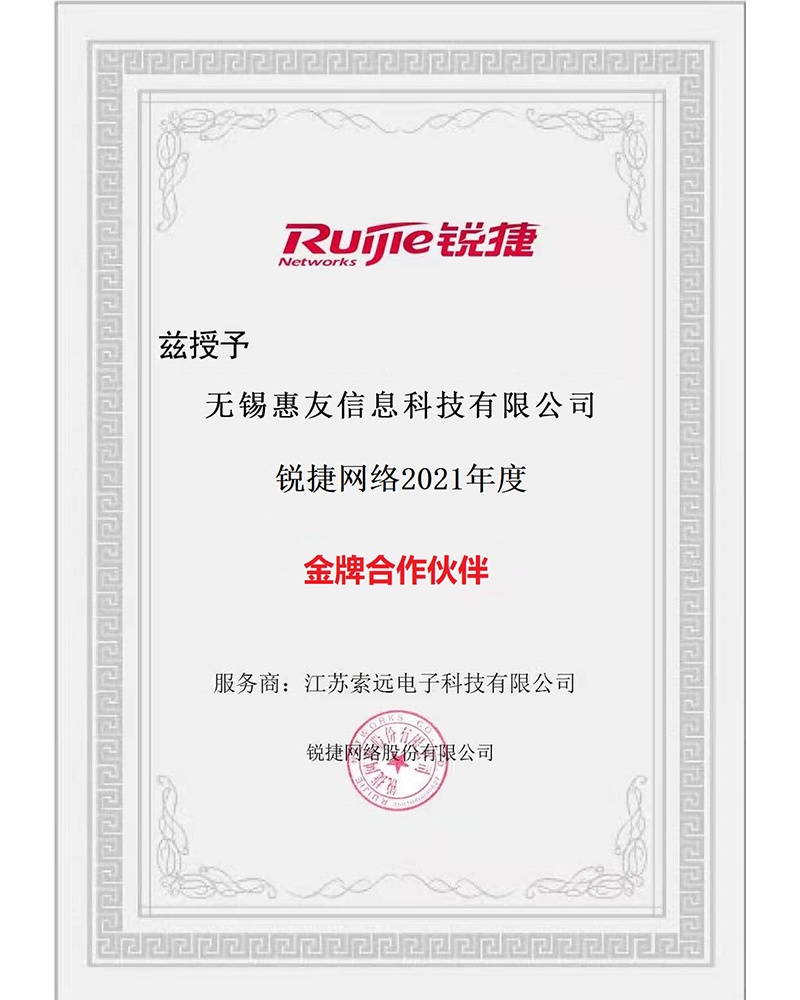 銳捷網(wǎng)絡(luò)2021年度金牌合作伙伴