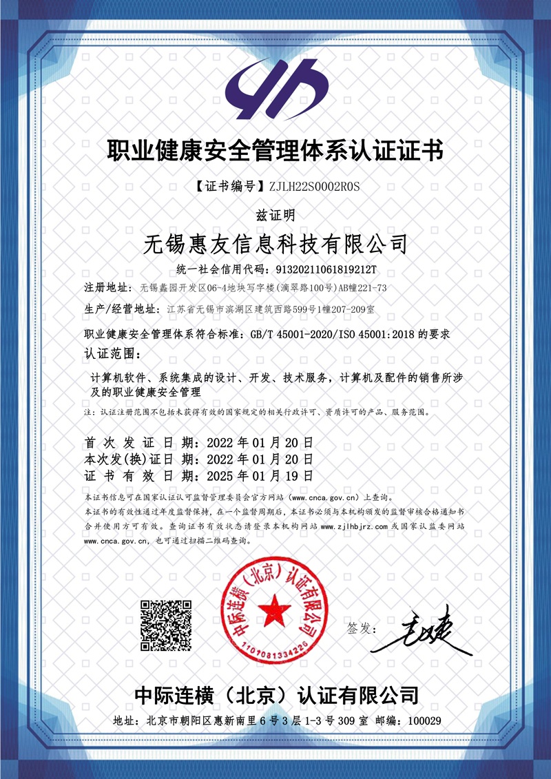 職業(yè)健康安全管理體系認證證書[OHSMS]