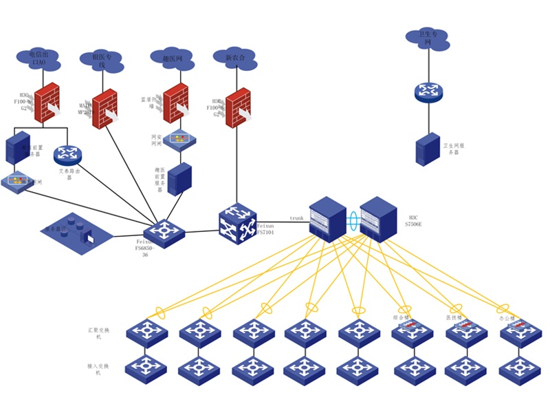 計算機網(wǎng)絡(luò)系統(tǒng)主要考慮其成熟性和先進性,網(wǎng)絡(luò)主干采用千兆光纖主干,水平干線為百兆速率交換。配線間交換機設(shè)備利用堆疊方式或級聯(lián)方式聯(lián)接成一體。整個網(wǎng)絡(luò)可劃分為多個虛擬子網(wǎng),可以有效控制網(wǎng)絡(luò)流量。?