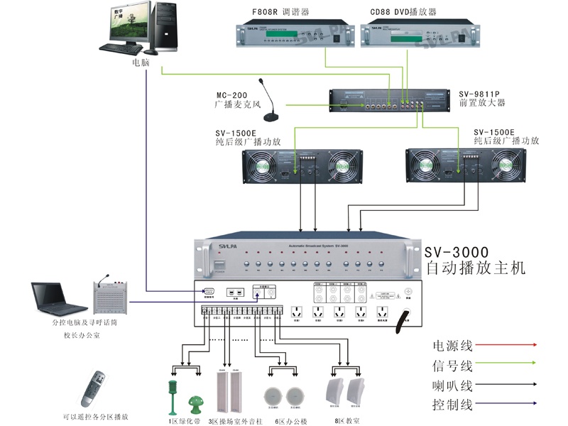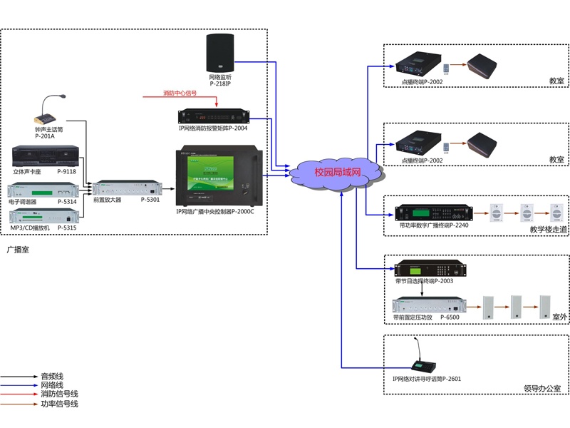 背景音響系統(tǒng)與消防廣播系統(tǒng)合二為一。系統(tǒng)平時(shí)可以播放音樂,或者通過話筒發(fā)布公共消息,可以滿足對(duì)全部樓層同時(shí)進(jìn)行廣播的需要。在遇火警信號(hào)時(shí),則可以自動(dòng)轉(zhuǎn)為發(fā)布消防廣播。